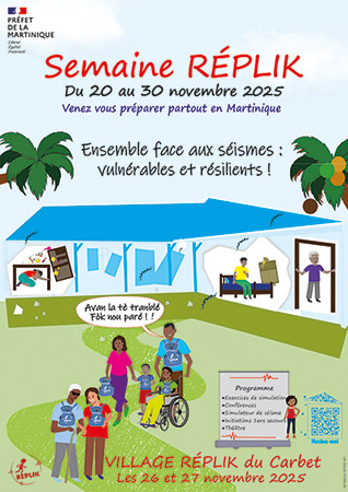 Des actions sont proposées dans de nombreuses communes de la Martinique : conférences, théâtres, exercices de simulation… et le village REPLIK du Carbet les 26 et 27 novembre.